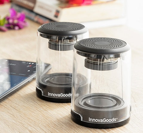 A set of 2 magnetic rechargeable wireless speakers ideal for listening to music or answering calls comfortably, thanks to its hands-free function. Both have a built-in microphone for mobile or even conference calls.